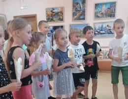 На праздник мороженого в Музей были приглашены ребята из летнего лагеря «Данко» Цетра дополнительного образования детей. Экскурсовод Писчасова М.В. познакомила детей с историей создания мороженого, рассказала о пользе и мифах, связанных с этим холодным лакомством.