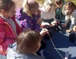 С особым интересом ребята наблюдали, как экскурсовод музея Мария Писчасова при помощи верёвки и узлов делает ручку-переноску для пятилитровой бутылки ПЭТ. И сами успешно повторили эту схему!
