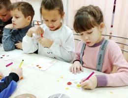 Юные экскурсанты дружно поиграли с пуговкой в прятки, собрали пуговичный пазл, на скорость, застегивали пуговицы на рубашках, послушали историю про Алешку-героя и найденную им коричневую пуговку и смастерили объемную аппликацию с пуговицами.