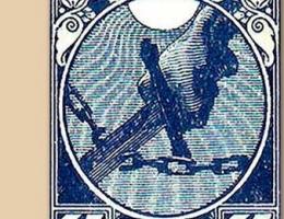 Первые почтовые марки РСФСР появились в обращении в 1918 году. (рис. №15). На них художник Рихард Зариньш изобразил руку с мечом, разрубающим цепь. Марка синего цвета стоила 35 копеек, коричневого — 70 копеек.