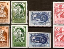 В Советском Союзе марки вышли в обращение в августе 1923 года (рис. №16). Их посвятили Первой Всероссийской сельскохозяйственной и кустарно-промышленной выставке. Эскизы к маркам нарисовал художник Георгий Пашков.