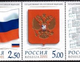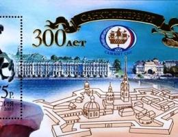 В 2001–2003 годах в России выпускались марки и почтовые блоки, часть рисунка которых была с золотым тиснением (рис. №19,20) . Это марки «Государственные символы», «300 лет Санкт-Петербургу» и «Кареты».