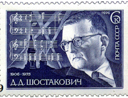 Спустя два года почтовое ведомство заказало ему выполнить юбилейную марку к 70-летию со дня рождения композитора Дмитрия Шостаковича. (рис.8,9) .