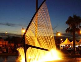 Великолепен Фонтан-лодка в Валенсии (Испания). Он расположен на площади Плайя-де-ла-Мальвароса в курортном городе Валенсия у самого Средиземного моря. Также его называют фонтан-парусник, он является достопримечательностью набережной Валенсии.