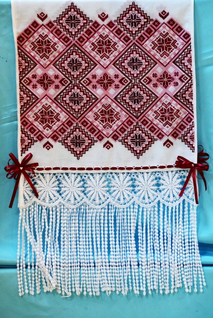 Вышитые бисером, крестом скатерти, рушники, салфетки Валентины Георгиевны Андреевой восхищаю т своим орнаментом, аккуратностью и завершенностью композиции (фото 1).