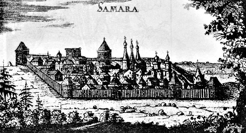 Деревянная крепость, сооруженная на мысе в виде стрелки между Самарой и Волгой, получила название по имени одной из этих рек, населенный пункт в виде крепости был очень мал, его называли "Самарский городок". Первым воеводой города и его официальным основателем стал князь Г.Засекин, который позже руководил строительством Саратова и Переволока - нынешнего Волгограда.