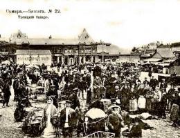 На двух базарных площадях шла бойкая торговля, которая усиливалась во время проведения ежегодных ярмарок (фото 8) – Соборной (осенью), Казанской и Воздвиженской (летом). Основной товар поступал в город по Волге. В конце 70-х гг. 19 века большой потенциал своему развитию город получил от построенной и начавшей функционировать железной дороги. С 70-х гг. 19 века Самара превратилась в центр лесозаготовки и лесопереработки (фото 9). Плоты из бревен сплавлялись в Самару из ближайших областей – Костромской, Симбирской, Казанской.
