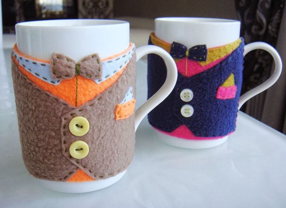 «Костюм» готов! Костюмчики для кружек могут быть самые разные! Форма, цвет, стиль - все зависит от вашей фантазии.