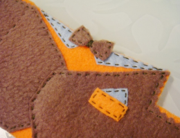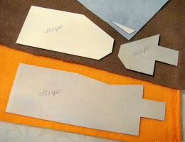 3. Вырезаем отдельно все детали выкройки из картона. Раскладываем на ткани, вырезаем. Собираем детали будущего «костюма» (фото 4).