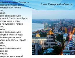 Гимн – это торжественное музыкально-поэтическое произведение. Обычно гимн исполняется на официальных торжественных церемониях. При исполнении гимна принято вставать и обнажать голову. Сегодня мы с вами познакомились с символикой Самарской области.