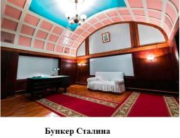 Бункер Сталина. В октябре 1941 года, когда Красная Армия героически обороняла подступы к Москве, Государственным Комитетом Обороны было выпущено секретное постановление. Оно предусматривало, что в случае крайней необходимости столица Советского Союза должна быть эвакуирована из Москвы в Куйбышев (прежнее название Самары). В феврале 1942 года началось строительство подземного бункера для размещения ставки Верховного Главнокомандующего И.В. Сталина. Это оборонительное сооружение, расположенное на глубине 37 метров, строили 3700 человек. Стройка, проходившая в режиме полной секретности, была завершена в октябре 1942 года. Информация была рассекречена только в 1990 году. Сегодня в бункере (фото 3) расположена экспозиция Музея гражданской обороны.