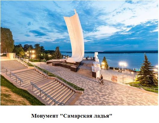 Монумент «Самарская Ладья» (фото 2). Огромная белая ладья, расположенная на берегу Волги, является одним из символов Самары. Эта конструкция появилась на набережной Самары в 1986 году, когда город на Волге отмечал свой 400-летний юбилей. Она создана по проекту городских архитекторов А. Янкина и И. Галахова.