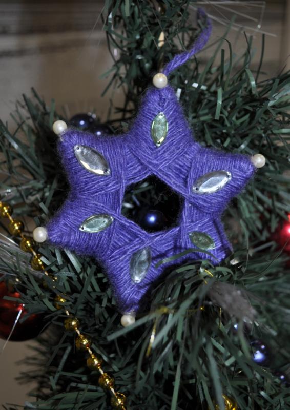 Какой Новый год без снежинок. Они могут быть разные. Из бумаги, салфеток, фольги, ткани, неожиданных материалов! Но у нас на выставке есть снежинки связанные и сплетенные из красивой пряжи (фото 5,6).