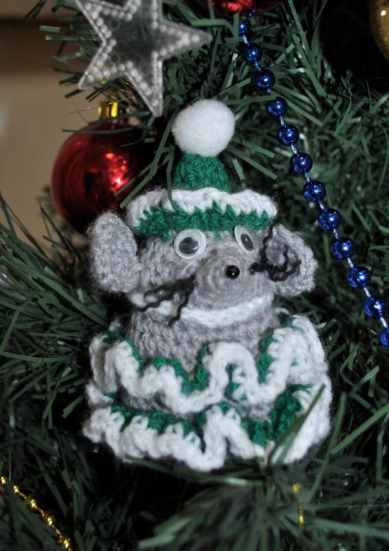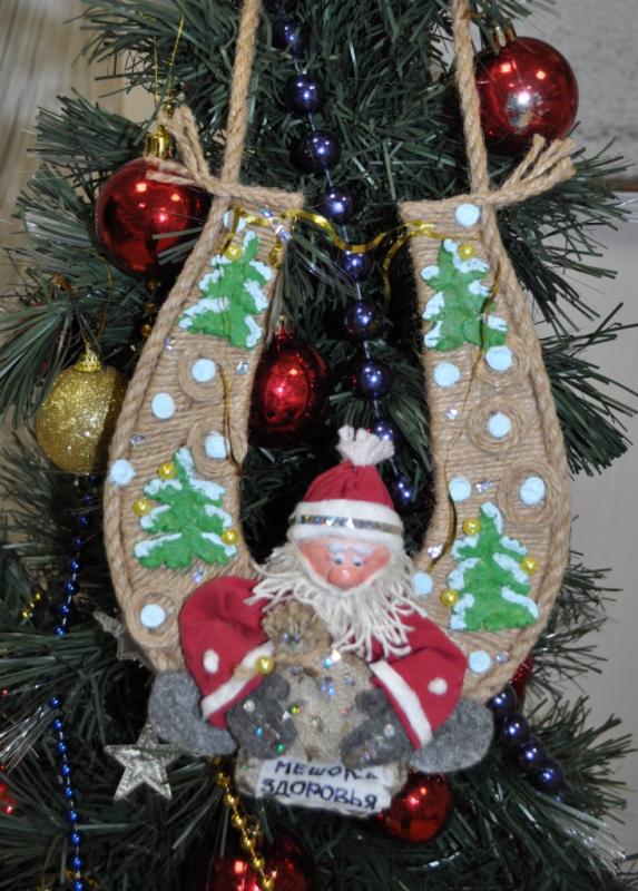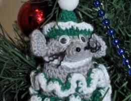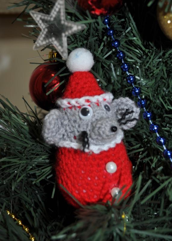 Миниатюрные вязанные и сшитые игрушки украшают нашу елочку. Это Дед Мороз на подкове, символизирующей достаток в доме (фото 7). Смешная Мышка-елка и Мышка-снеговик. У каждой специальные костюмы и веселые шапочки (фото 8,9).