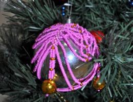 А еще у нас в музее работает мастерская «Радость творчества» для людей с ограниченными возможностями здоровья. Они тоже готовятся к празднику. Здесь можно увидеть их елочные игрушки, оплетенные бисером и бусинами (фото 1, 10, 11).