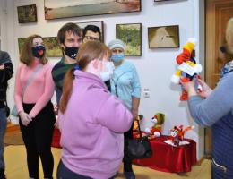 Путешествие по музею продолжилось уже в другом выставочном зале, где представлены замечательные поделки и сувениры на выставке творческих работ «А у нас Новый год!». Юные жители города из детских садов и школ города вместе с родителями изготовили на новогоднюю выставку маскарадные маски, поздравительные открытки. Очень понраивлись экскурсантам символы нового года: тигры, елочки, елочные игрушки, сувениры и новогодние композиции..