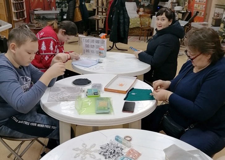 Мы 3 и 6 января собирались в музее истории города за чайным столом, поздравляли друг друга с наступившим Новым годом и, конечно, занимались нашими творческими работами. Много общались между собой. Нам было весело, интересно и день прошел очень плодотворно!