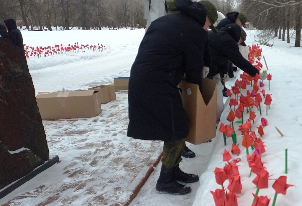 15 февраля около мемориального комплекса, посвященного памяти участников боевых действий в Афганистане, возложили 3742 красных тюльпана школьники, студенты, воспитанники юнармейских отрядов, военно – патриотических клубов, волонтеры серебряного возраста, «ЭкОНТ», «ЭкоПомощники», РМОО «Зеленая планета» …