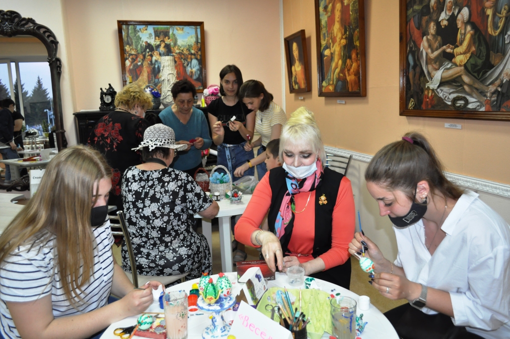 Другая часть посетителей делала кактус из скорлупы куриного яйца под руководством отрадненской художницы Ларисы Гвоздевой. Елена Меренкова учила девушек вышивать бисером.