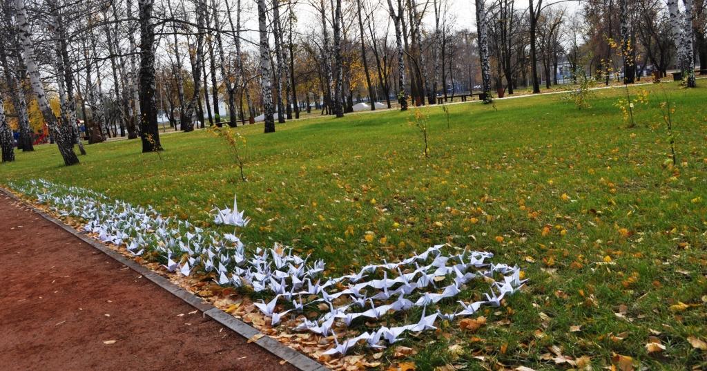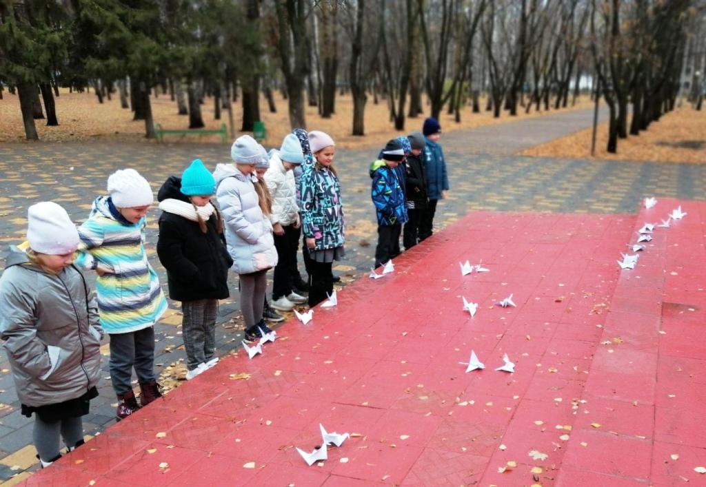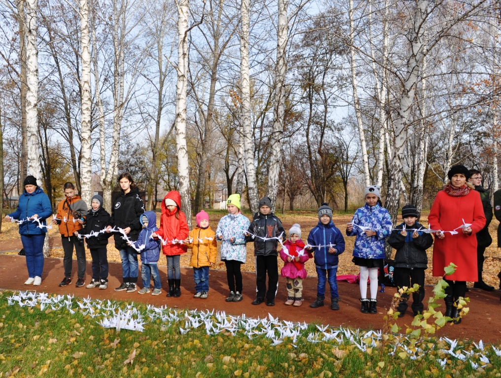 Сотрудники музея, воспитанники военно – патриотического клуба «Гвардеец ДОСААФ», патриотического центра «Пламя», учащиеся и учителя школ №8,10, гимназии «Гармония», школы – интерната, реабилитационного Центра «Огонек», жители нашего города возложили около 500 белых журавликов на Аллее Памяти в городском парке. Журавлики были сделаны детьми, а о празднике Белых журавлей они узнали от учителей и родителей.