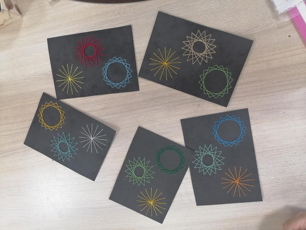 Участники студии «Радость творчества» продолжают формировать навыки выполнения основных приемов работы в технике нитяная графика. Сегодня ребята научились заполнять круг тремя способами.