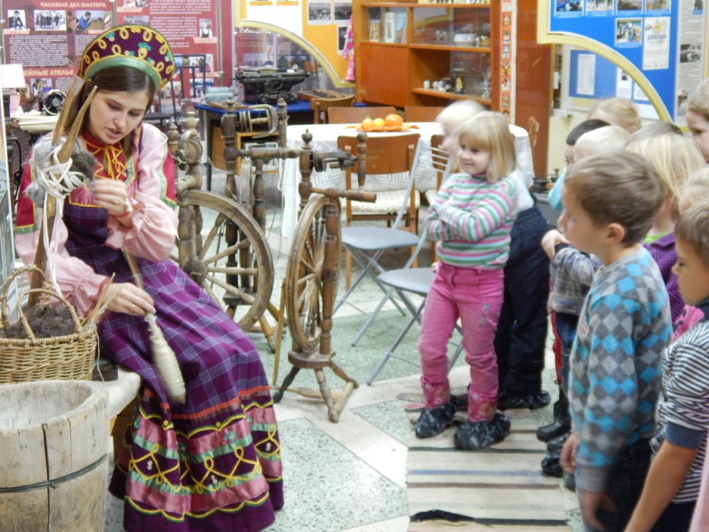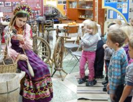 А внукам дай только дотронуться до чугунного утюжка, которым прабабушки утюжили рюши, воланчики своих нарядов, сесть за веретенце, поднять трубку старинного телефона, подержать в руках берестяной туесок. А если гидом будет девушка в русском сарафане да расскажет еще она, как получается комочек шерсти, и на твоих глазах спрядет из него тонюсенькую пряжу, которая вполне может сгодиться и для узористого платка... Такие впечатления сохранятся надолго. К тому же частенько наш музей в народ выходит, особенно летом, когда проходят праздники дворов. Вот где раздолье для воображаемого путешествия в те далекие времена, когда в неспешных делах жили наши прапращуры. Нелегко давался им хлеб насущный, но твердо стояли они на ногах, потому что жизнь их держалась на трех китах: вере, любви и согласии.