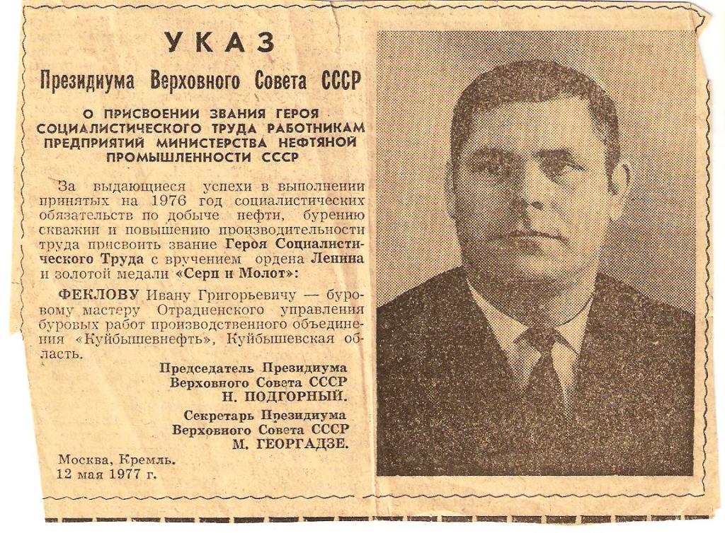 Легендарный первопроходец – буровик Иван Григорьевич Феклов. Ему в этом году исполнилось бы 90 лет. Он родился 11 июня 1935 года в селе Лозовка Кинель – Черкасского района Куйбышевской области.