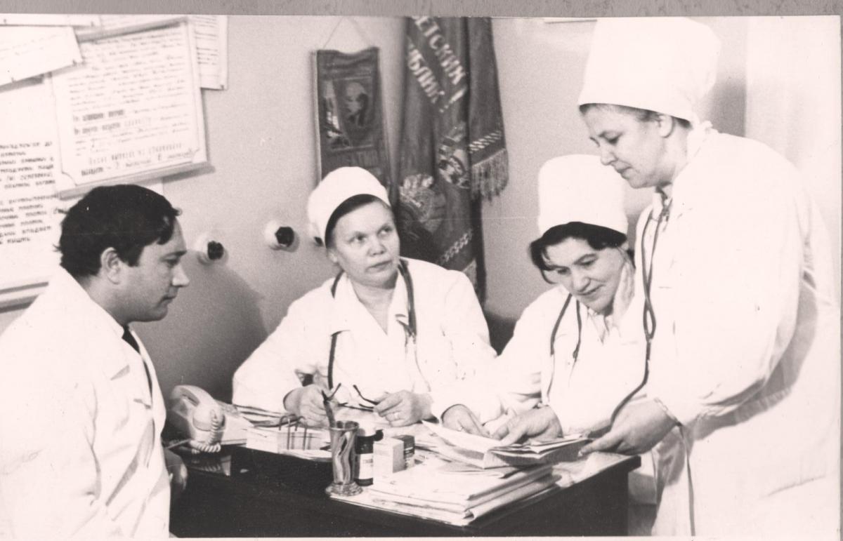 1948 год. В поселке нефтяников открылся первый врачебный здравпункт. : Из маленького врачебного пункта выросла крупная медсанчасть, У истоков отрадненской медицины стояла первый врач Ю.Г. Веремеенко.