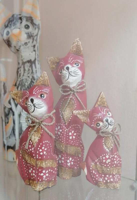 Фигурки кошек поражают своим многообразием. Кошек, котов и котиков на выставке представлено более 250 штук, разного размера и материала исполнения. Главный и самый ценный экспонат - советская резиновая игрушка – пищалка – милый котик, которого Эльвине в детстве подарил Дед Мороз за рассказанный стишок.