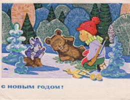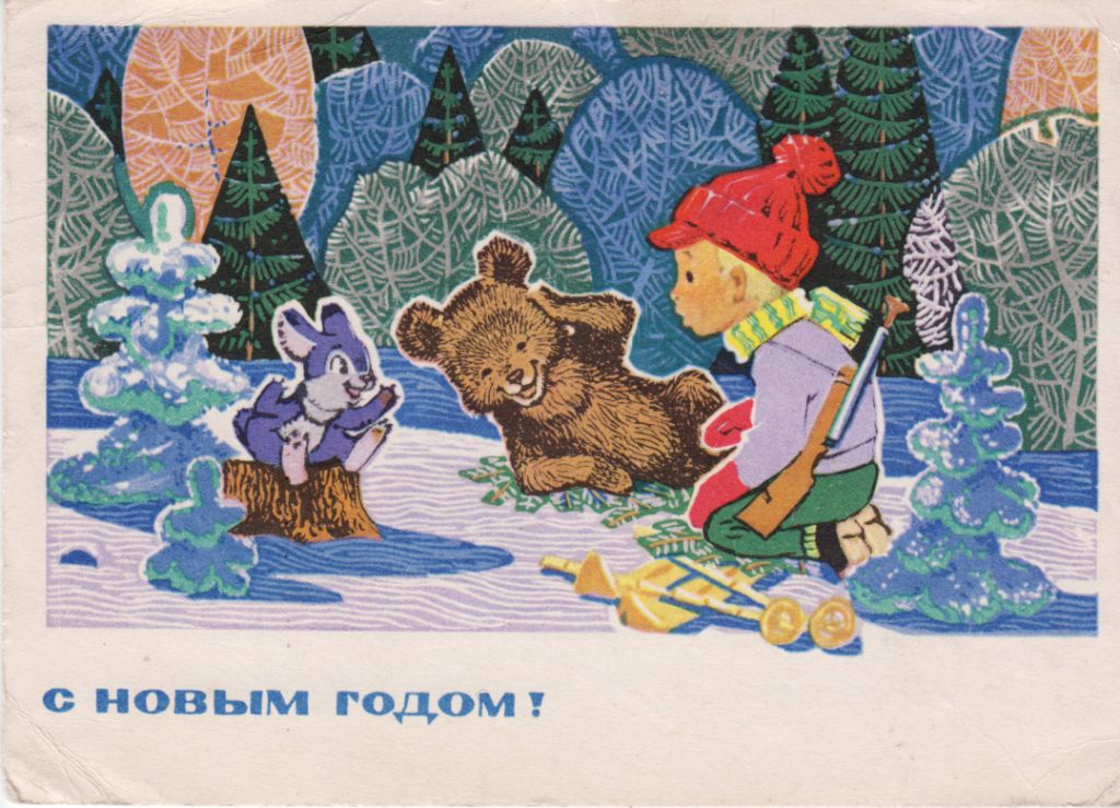 Новый год был самый любимый праздник и в это время ждали чуда и нового счастья. И как кусочек счастья и залог встречи воспринимались новогодние открытки. Эти маленькие послания со сказочными персонажами ждали с нетерпением во всех концах огромной Страны Советов. Это был настоящий предпраздничный ритуал – заранее выбрали и приобретали целые стопки красочных новогодних открыток, которые подписывали и отсылали родственникам, друзьям и зТеперь, уже в наши дни, старые открытки – трогательный привет из еще не столь далекого прошлого.