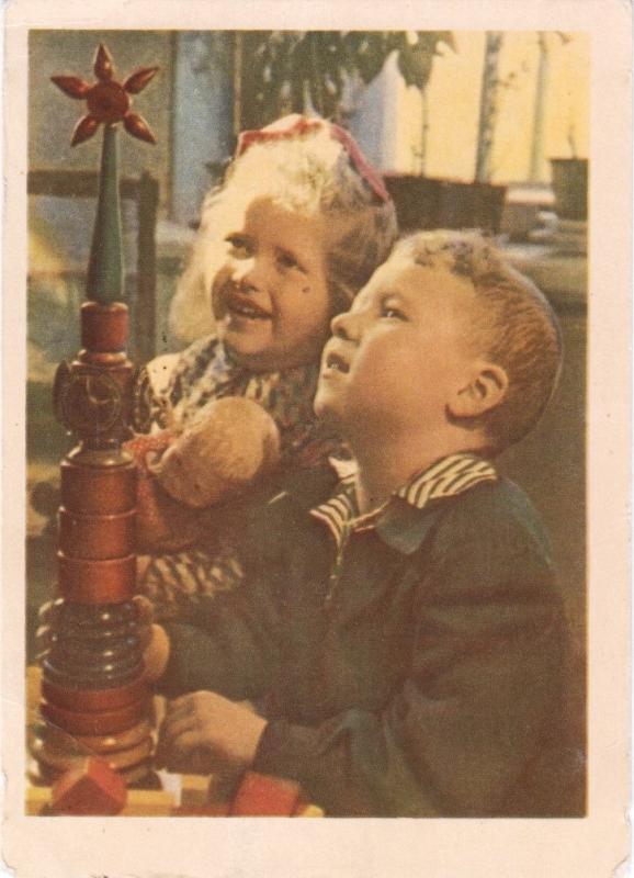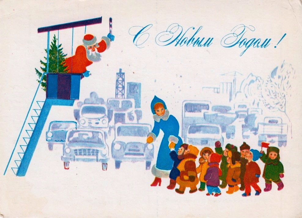 В 1953 году налажен массовый выпуск советской поздравительной открытки. Их рисовали лучшие художники страны на отличном картоне, и это зачастую был единственный подарок, который могли позволить себе люди в послевоенном СССР. Яркие, глянцевые открытки радовали глаз и создавали атмосферу праздника. Нередко открытки коллекционировали или делали из них новогодние поделки.