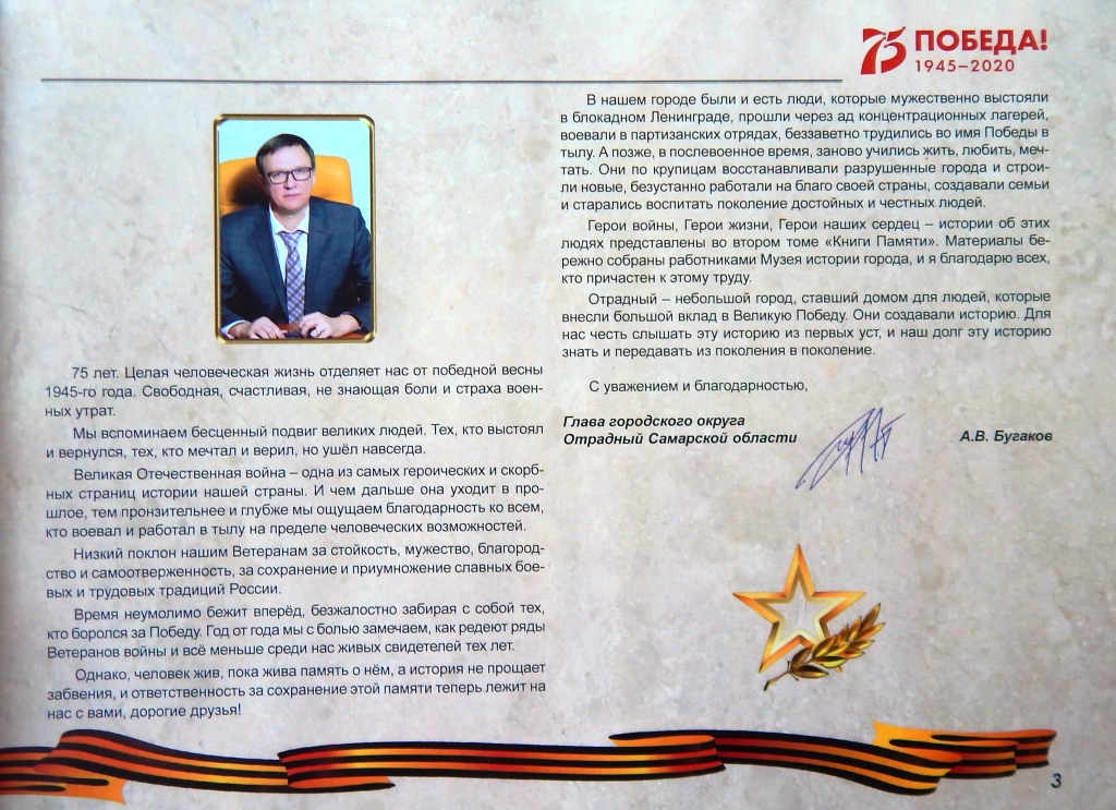 В фондах МБУК «Музей истории города Отрадного» имеются уникальные книги, Книги памяти, при подготовке которых были использованы воспоминания ветеранов Великой Отечественной войны и их родственников, архивные материалы Музея истории города Отрадного, городских газет.