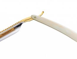 У классической опасной бритвы рукоятка, составленная из одной или двух частей, сделана из рога, дерева, слоновой кости, перламутра или панциря черепахи. Поэтому знающие люди говорят не о ручке бритвы, а об оправе. Ручка соединена с лезвием заклепкой, которая является осью вращения бритвы и служит для ее складывания. Стопоров и пружин нет. Известны два типа лезвий: сплошные и полые. Сплошные лезвия уже не производятся, хотя твердость их кромки была превосходной, и, соответственно, брили они замечательно.