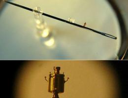 - Самый маленький самовар изготовил мастер миниатюры Н.Алдунин. Размер агрегата составляет 1,2 мм. Создан самовар из золота. Всего состоит из 12 отдельных деталей. Но самый маленький действующий самовар был сделан слесарем Института радиотехники и электроники АН СССР Василием Васюренко. В действующем самоварчике высотой 3,5 миллиметра можно вскипятить одну каплю воды.