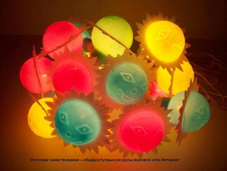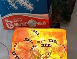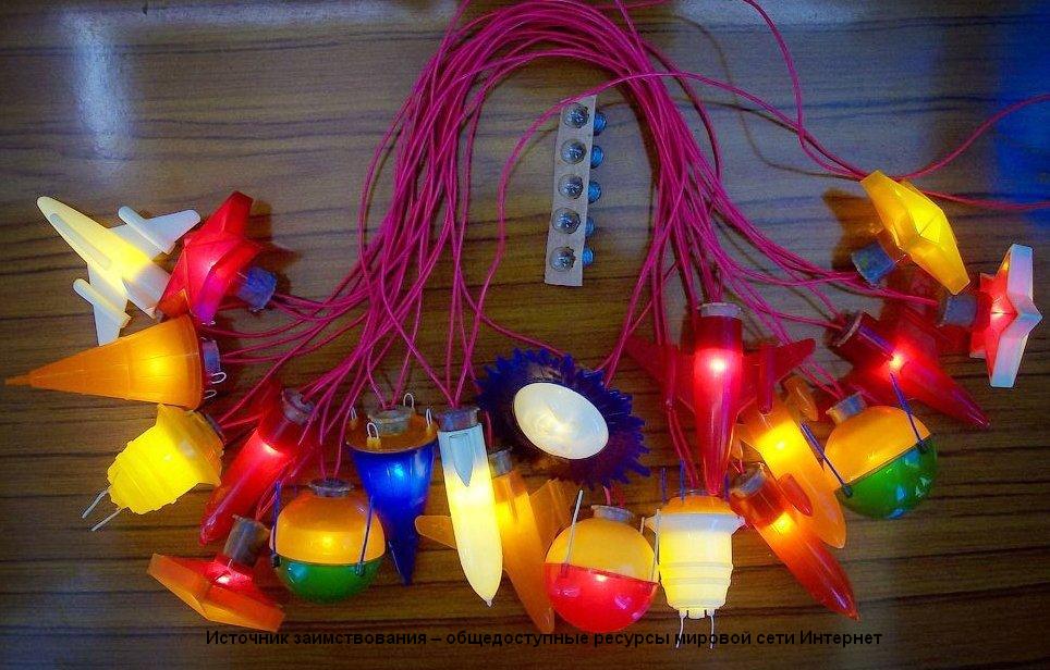 Первые гирлянды в СССР выглядели почти кустарными: это были обычные автомобильные лампочки, припаянные к одному проводу, покрашенные лаками и красками. Несмотря на крайнюю простоту, гирлянды «Московского электролампового завода» были необычайно востребованы. Это неудивительно, ведь даже в тяжелые военные и послевоенные годы они несли в себе толику тепла и уюта.
