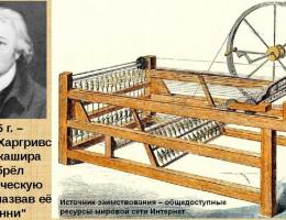 Первая прядильная машина, способная одновременно прясть не одну, а восемь нитей, была изобретена в 1764 г. британцем Джеймсом Харгривсом. По легенде, однажды его юная дочь Дженни, играя, опрокинула отцовскую прялку, и Джеймс заметил, что даже в горизонтальном положении колеса она продолжает работать. Это натолкнуло мужчину на мысль об изменении конструкции прибора. Свою механическую прядильную машину Харгривс назвал в честь дочки - «Дженни». Вскоре его изобретение стало настолько популярным, что обозленные ткачи из его города сожгли дом изобретателя. Но Харгривс с семьей перебрался в другое место, запатентовал свою «Дженни» и работал над ее усовершенствованием. Так, к концу жизни Джеймса, у его «Дженни» было уже восемьдесят веретен и в движение ее приводил уже не человек, а гигантский водяной двигатель.