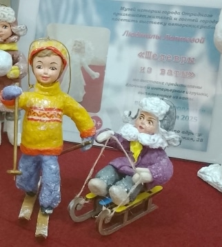 В музее работает авторская выставка Людмилы Владимировны Лаптевой "Шедевры из ваты". Умелыми руками талантливой отрадненской мастерицы создано более 50 ватных игрушек. Коллекция постоянно обновляется и дополняется.