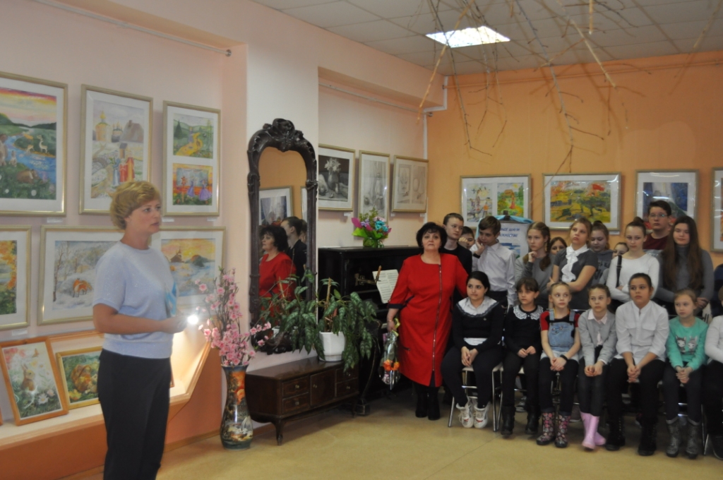 В торжественной обстановке проходило открытие выставки А. Зыбановой. В музей пришли одноклассники Ангелины из ДШИ и школы №6. Воспитанники Школы искусств – солистка Анна Санина и баянист Виктор Ляпин - исполнили музыкальные номера.