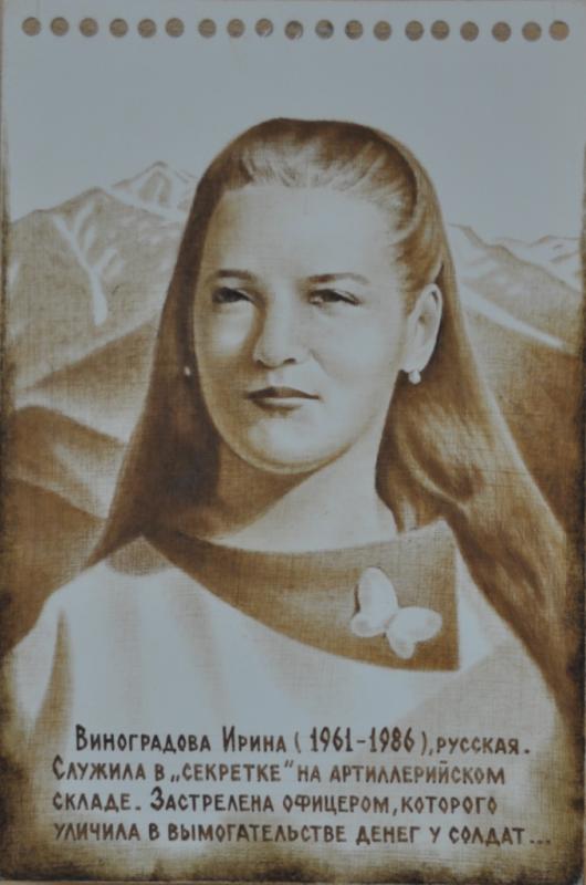 Виноградова Ирина (фото 10) погибла в Афганистане во время следования в отпуск на родину от пули русского подполковника, за то, что уличила его в вымогательстве денег у солдата-срочника, возвращающегося домой.