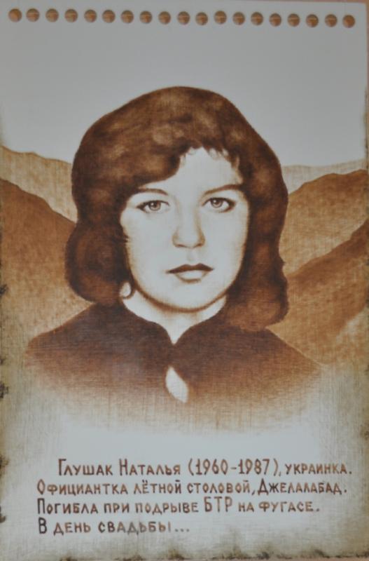 Очень трогает история короткой жизни Глушак Натальи (фото 12), которая работая в Афганистане, встретила свою любовь – офицера из роты связи. Решили пожениться. И во время возвращения в военную часть после росписи из Кабула на БТР подорвались на фугасе. Наталья умерла сразу, а ее муж чуть позже.
