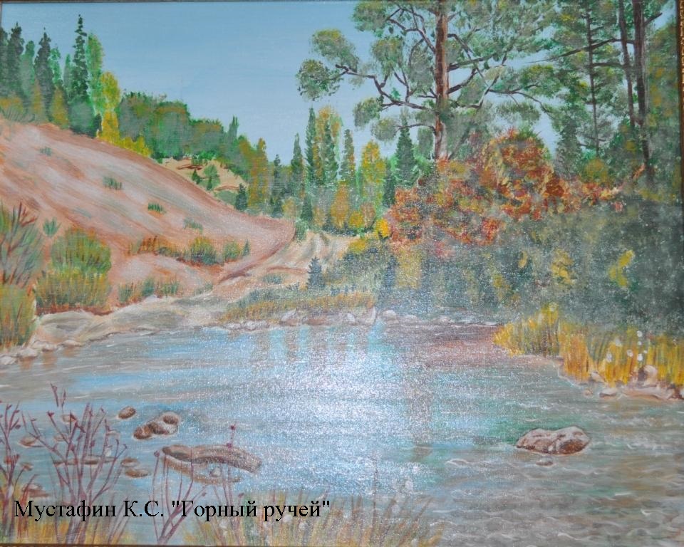 Есть на выставке и работы автора, который принимает участие впервые. Это Мустафин Камиль Сагитович, который увлекся пейзажами и натюрмортами в технике акрила недавно, будучи в пенсионном возрасте. Мы надеемся на дальнейшее сотрудничество с ним.