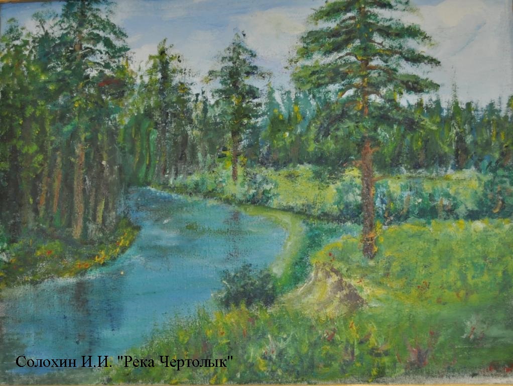 На нашей выставке представлены картины ветерана Великой Отечественной войны Солохина Ивана Ильича. В своих работах Иван Ильич воспевает красоту родного края так, как могут делать только люди, прошедшие войну.