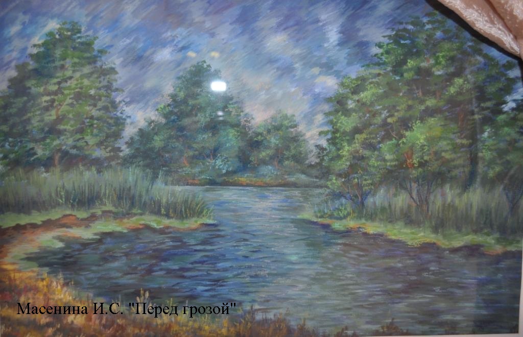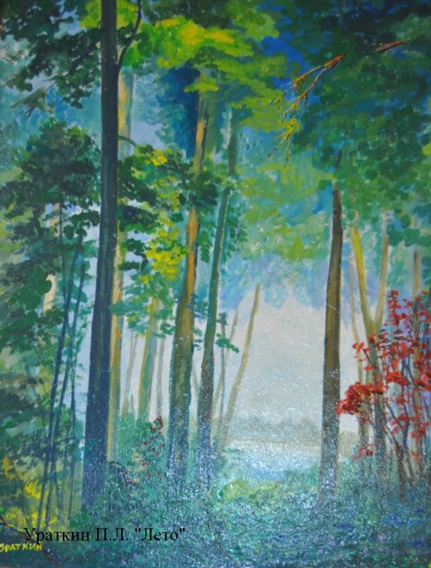 Здесь и работы именитых художников нашего города. Ураткин Павел Леонидович представил живописные полотна и графику. Радует его картина «Лето», уводящая нас в тень деревьев от летнего зноя.