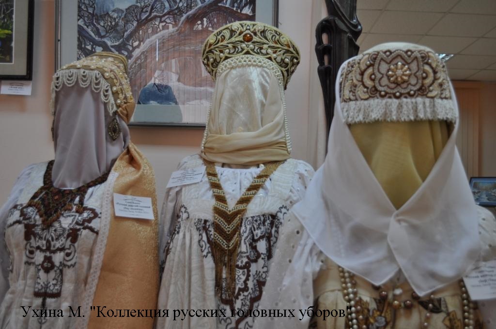 И конечно, декоративные работы украшают экспозицию в музее. На этот раз это резьба по дереву Деникина Юрия Викторовича, декоративные панно Гвоздевой Ларисы Петровны и русские головные уборы Ухиной Марины.