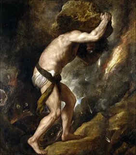 С тех времен и несет тяжкую кару в загробной жизни за все свое коварство, за весь обман, которые совершил на земле коринфский царь и вынужден подымать на высоченную, гору огромный камень. Изможденный тяжким трудом из последних сил доходит Сизиф почти до самой вершины: еще небольшой шаг и окончен будет Сизифов труд, но зловещий камень выскальзывает с его рук и с грохотом катится вниз, вздымая шлейф пыли. И вновь начинает свою работу коринфский царь.