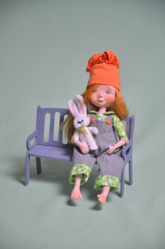 Кукла «Лиса Алиска». Очень реалистичный образ маленькой девочки, с лисьим характером и внешностью. У нее рыжие волосы, веснушки, прищур хитреньких глаз, а в руках игрушка-зайчик.
