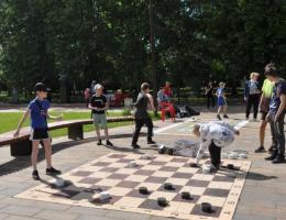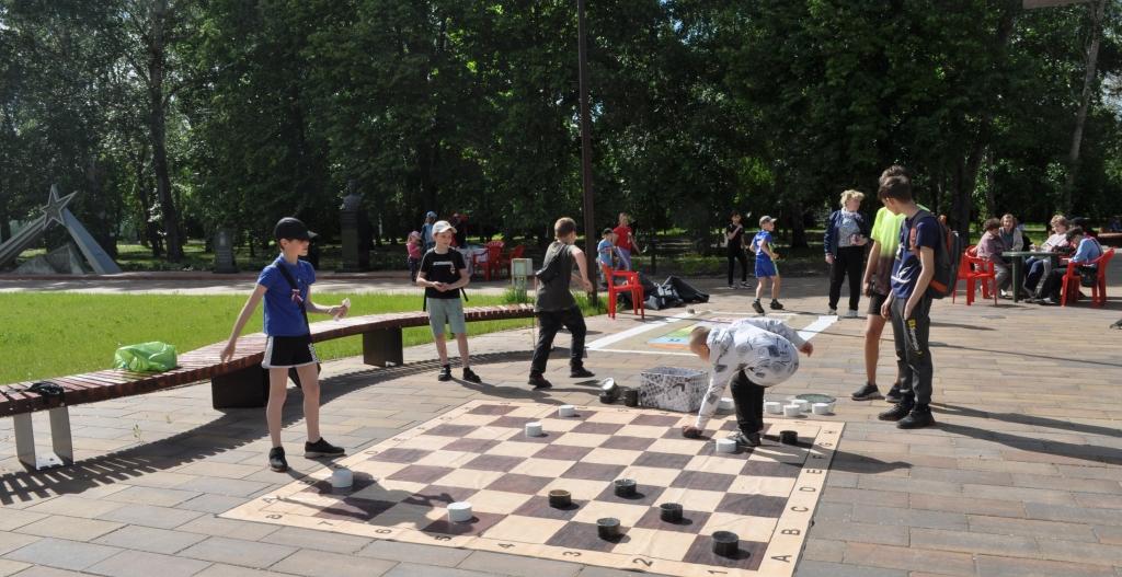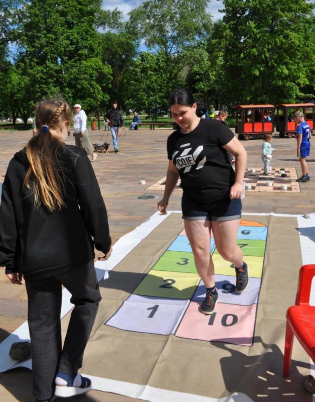 А на станции «Игровая» всем было очень весело. На напольной шахматной доске шли настоящие соревнования, а рядом девочки и даже мальчишки прыгали в классики, играли в различные народные игры.