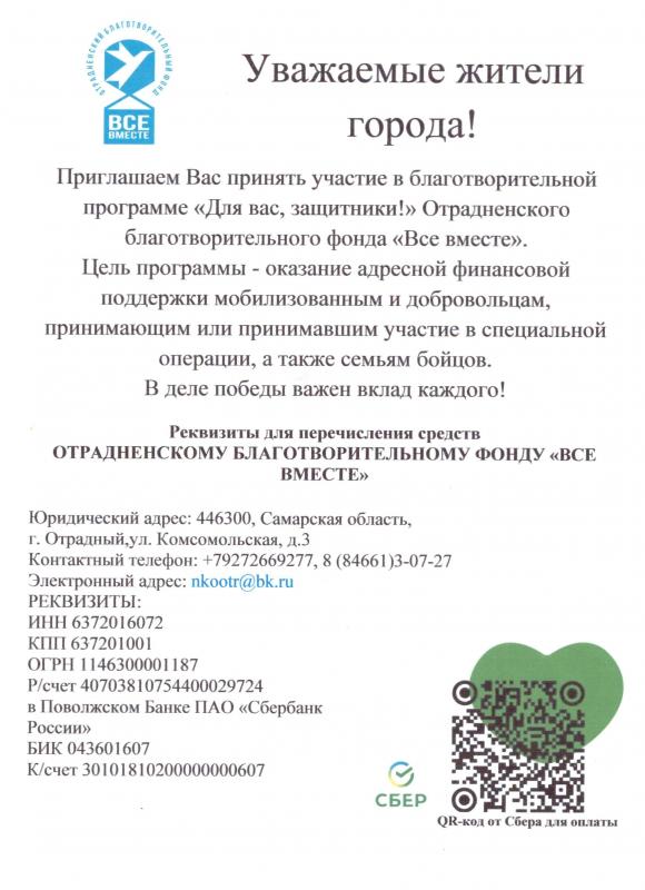 ОТРАДНЕНСКОМУ БЛАГОТВОРИТЕЛЬНОМУ ФОНДУ «ВСЕ ВМЕСТЕ»