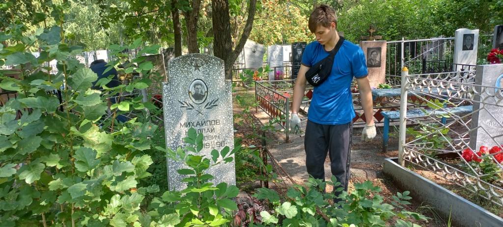 Волонтеры Фадеев Ростислав и Стрельников Михаил (наставник молодежи Бердыева О.А.) убрали могилы участника Великой Отечественной войны, почетного гражданина города Отрадного Поцелуева А.А. и участника войны Михайлова Н.П..