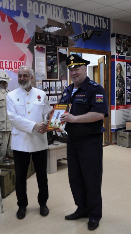 Затем автор-составитель книги – подполковник, военврач, вице-президент Северо-Западной ассоциации ветеранов боевых действий, член Русского географического общества Сергей Полонский провел презентацию книги в зале Славы и Памяти музея.